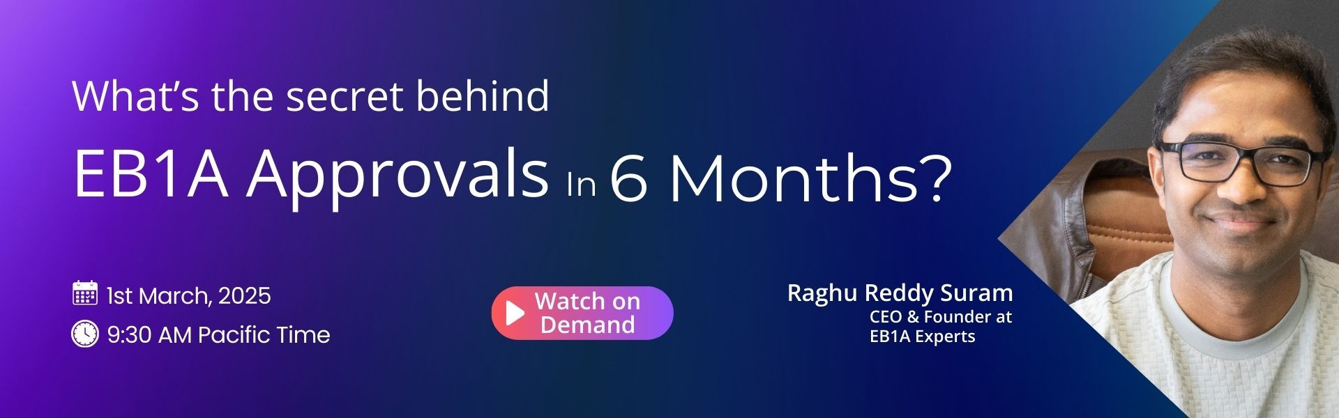 • Live Q&A with Raghu Suram – Find answers to the most pressing EB-1A questions directly from an expert.
